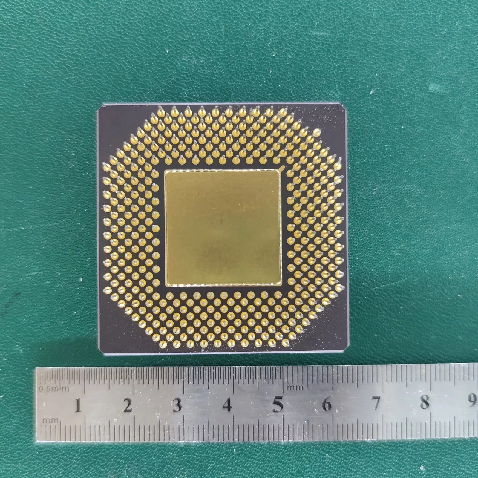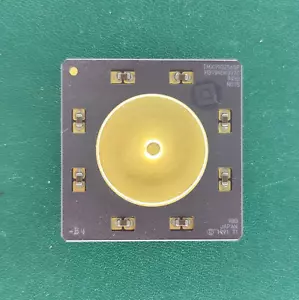The module features a large gold-plated central disc surrounded by precision components mounted on a high-grade ceramic substrate.