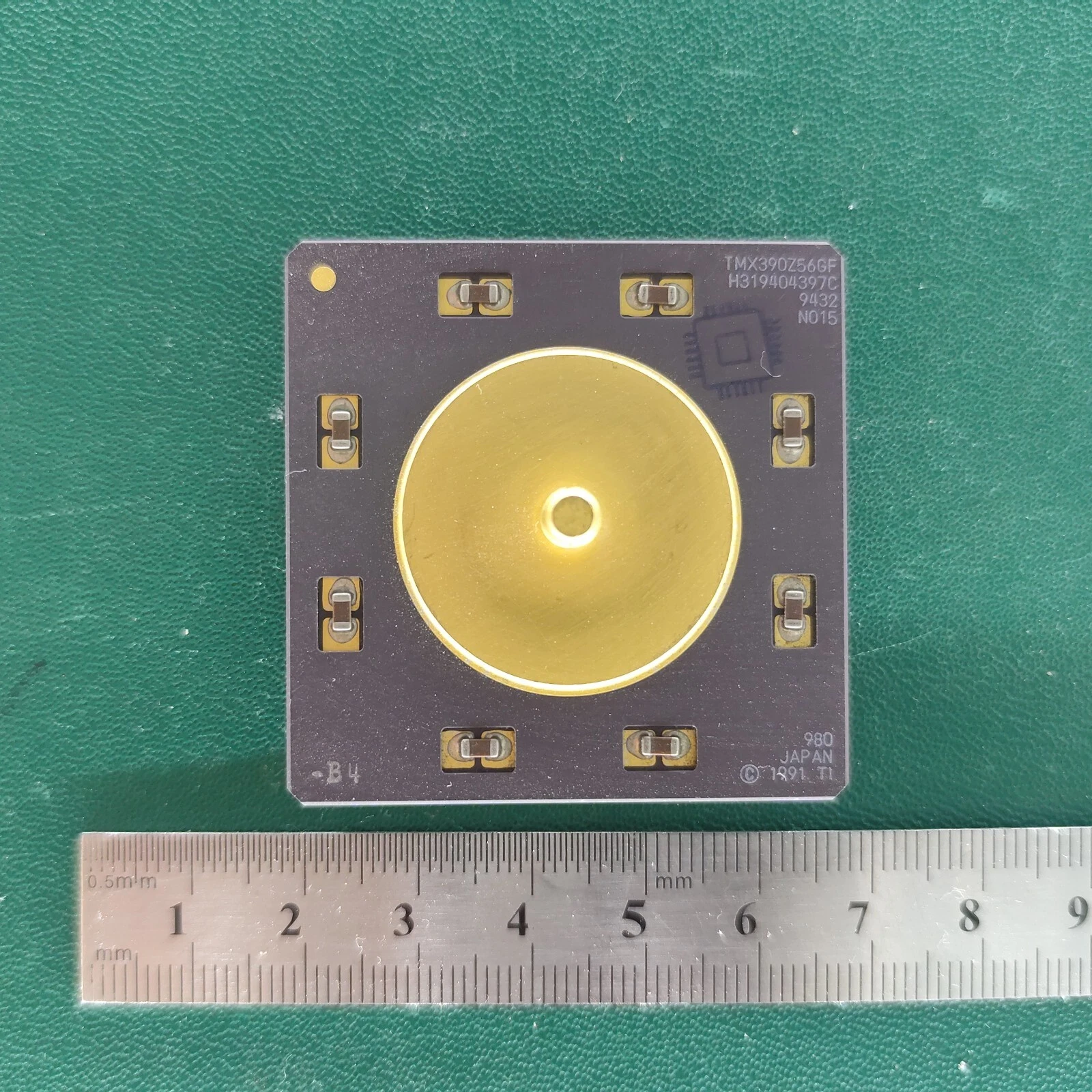 Rare Texas Instruments ceramic hybrid module, model TMX390Z566F, manufactured in Japan with a date code from 1991.
