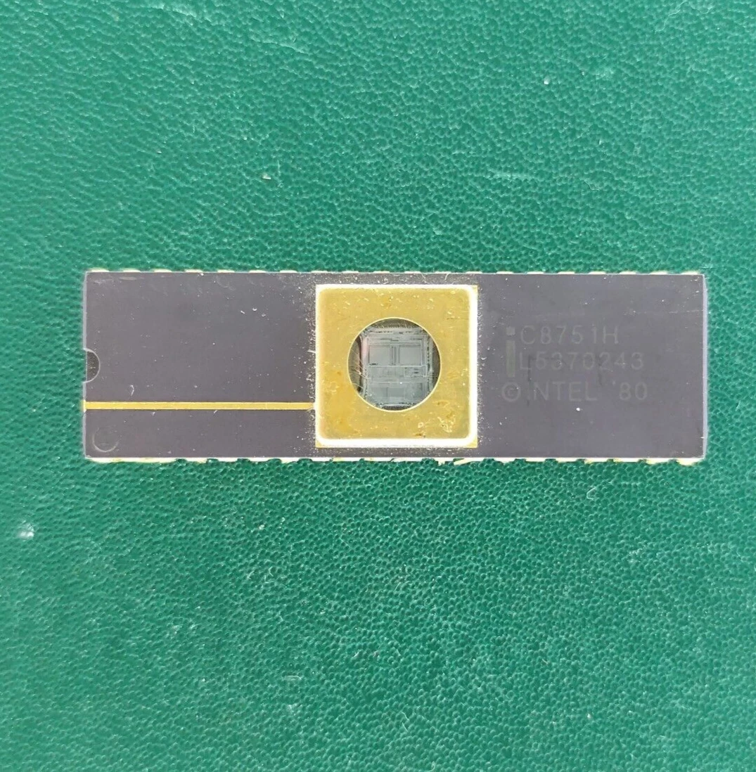 Intel C8751H ceramic EPROM microcontroller with gold-plated window