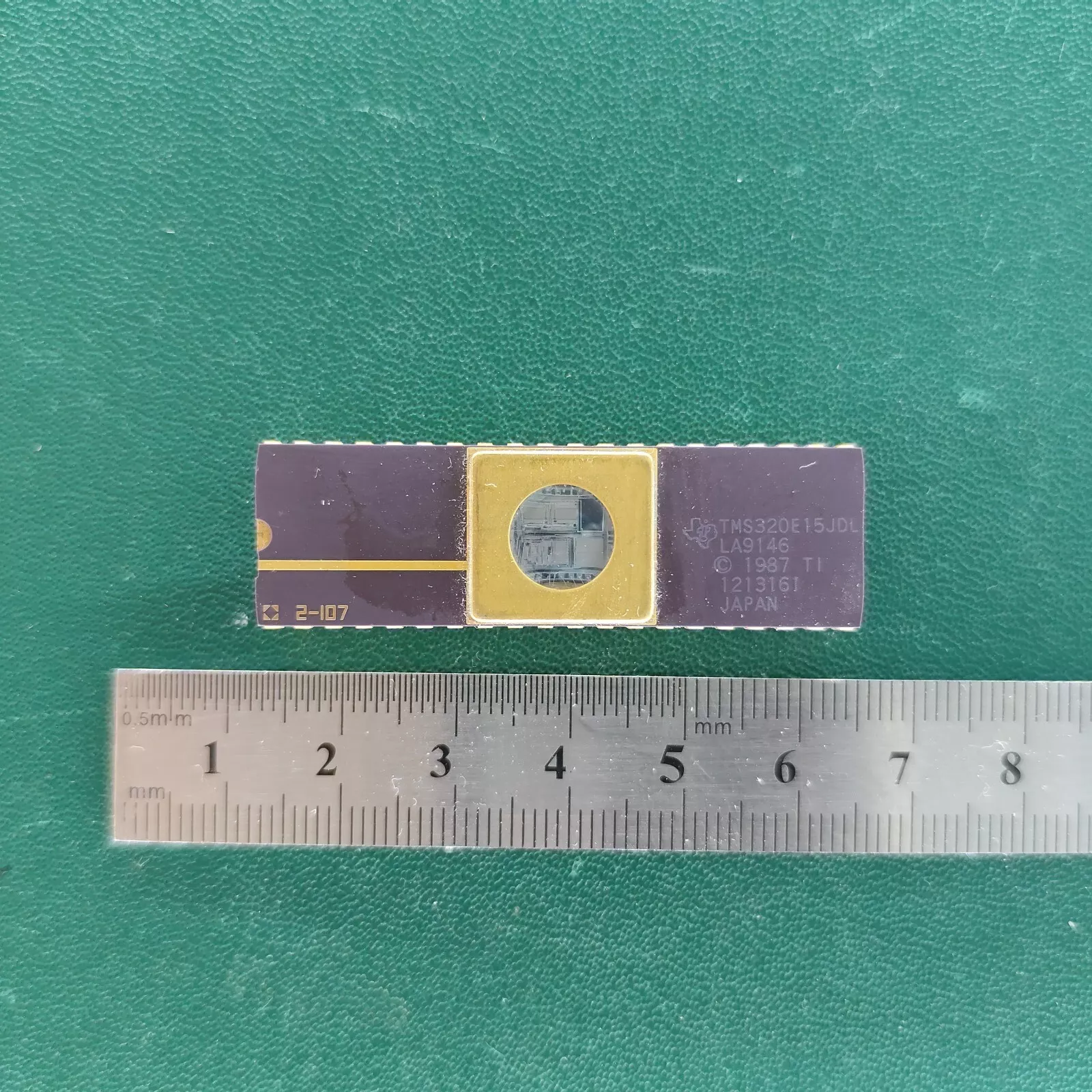 Manufactured in 1987 in Japan, this chip is part of TI’s early TMS320 DSP family, making it a valuable collectible piece of computing history.