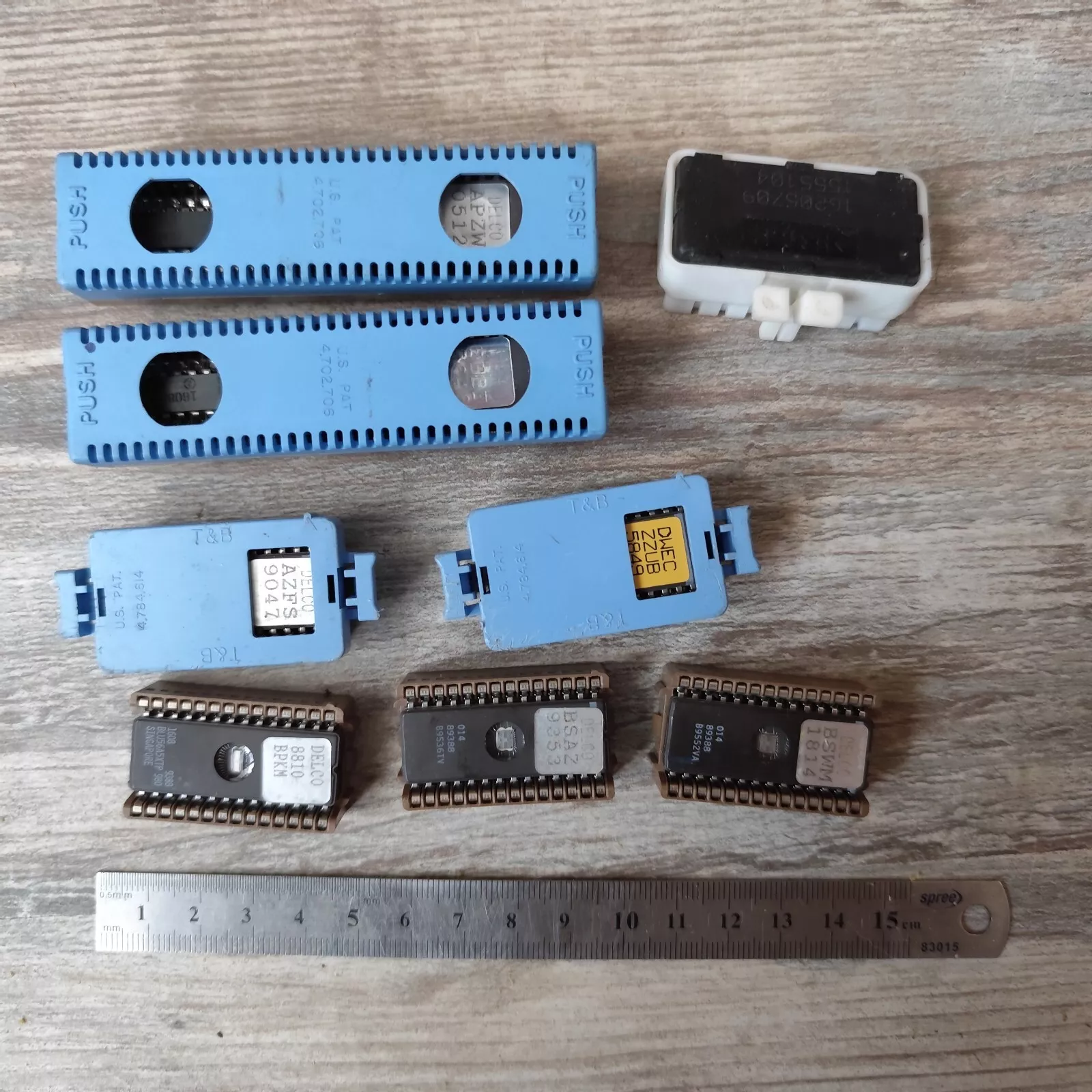 Lot of 8x ACDelco / AC DELCO EPROM chips used in Engine Control Modules (ECM / ECU) for various automotive applications.