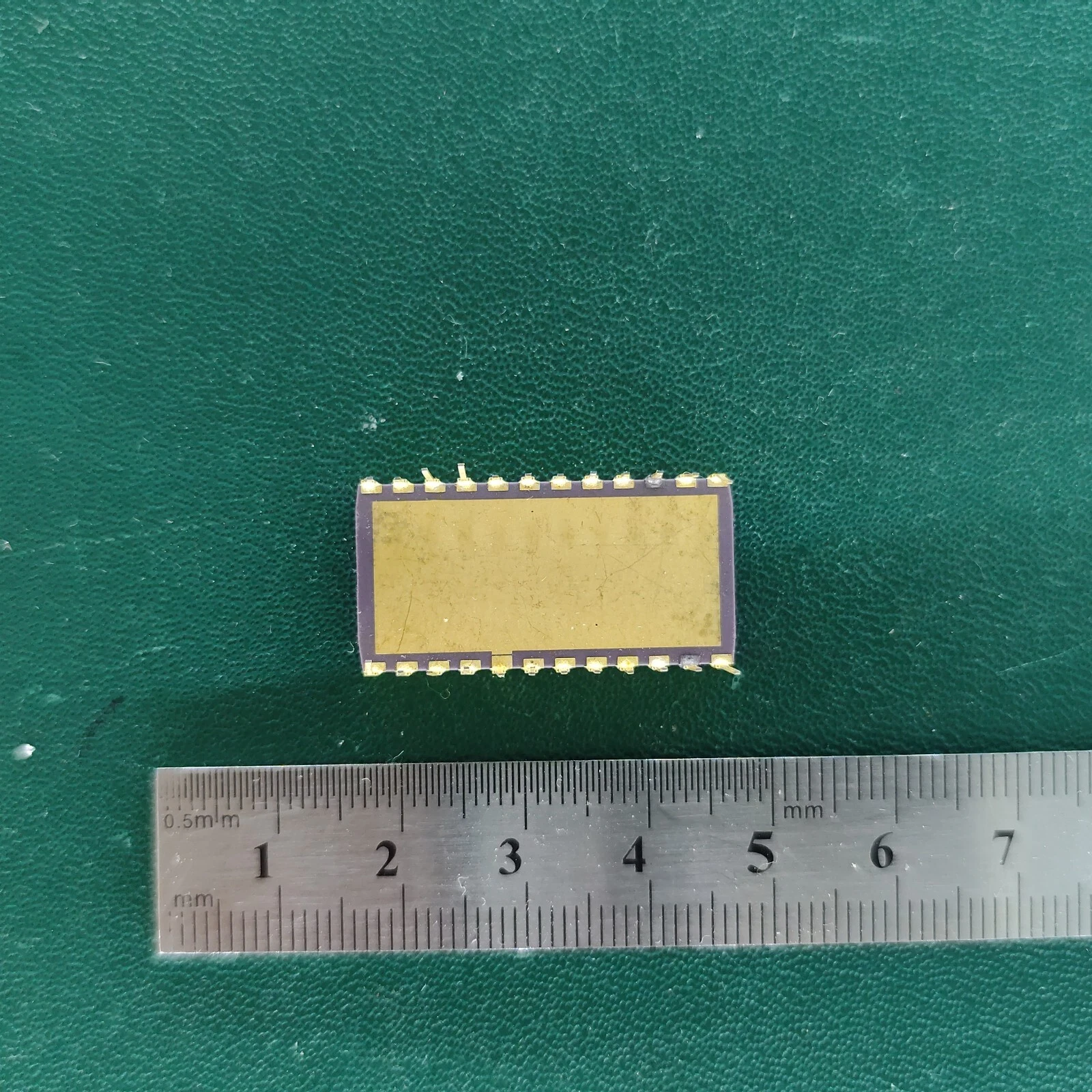 VINTAGE CERAMIC INTEGRATED CIRCUIT WITH GOLD RARE COLLECTIBLE MICROCHIP