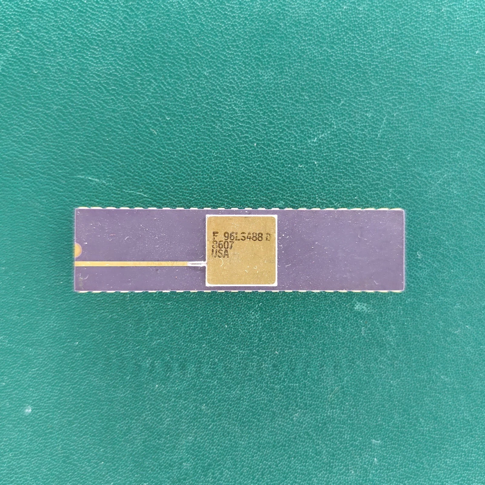 The chip is housed in a vintage ceramic DIP package with gold lid and markings.