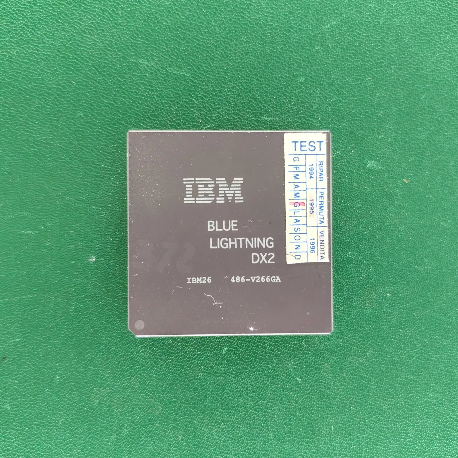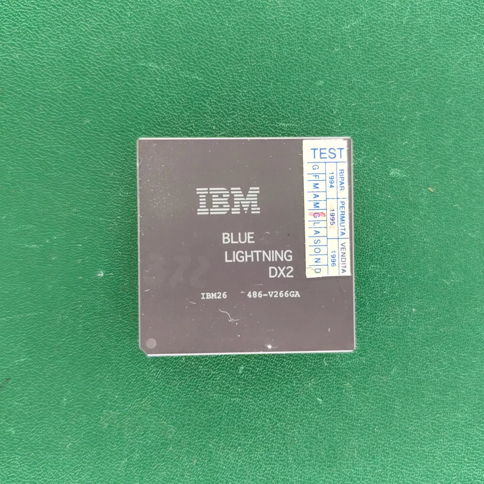 This is an IBM Blue Lightning DX2 (486-V266GA) microprocessor, part of IBM’s 486-compatible CPU family from the early 1990s. Unlike Intel’s 486, the Blue Lightning line was designed as a cost-effective and efficient alternative with enhanced performance in some tasks.