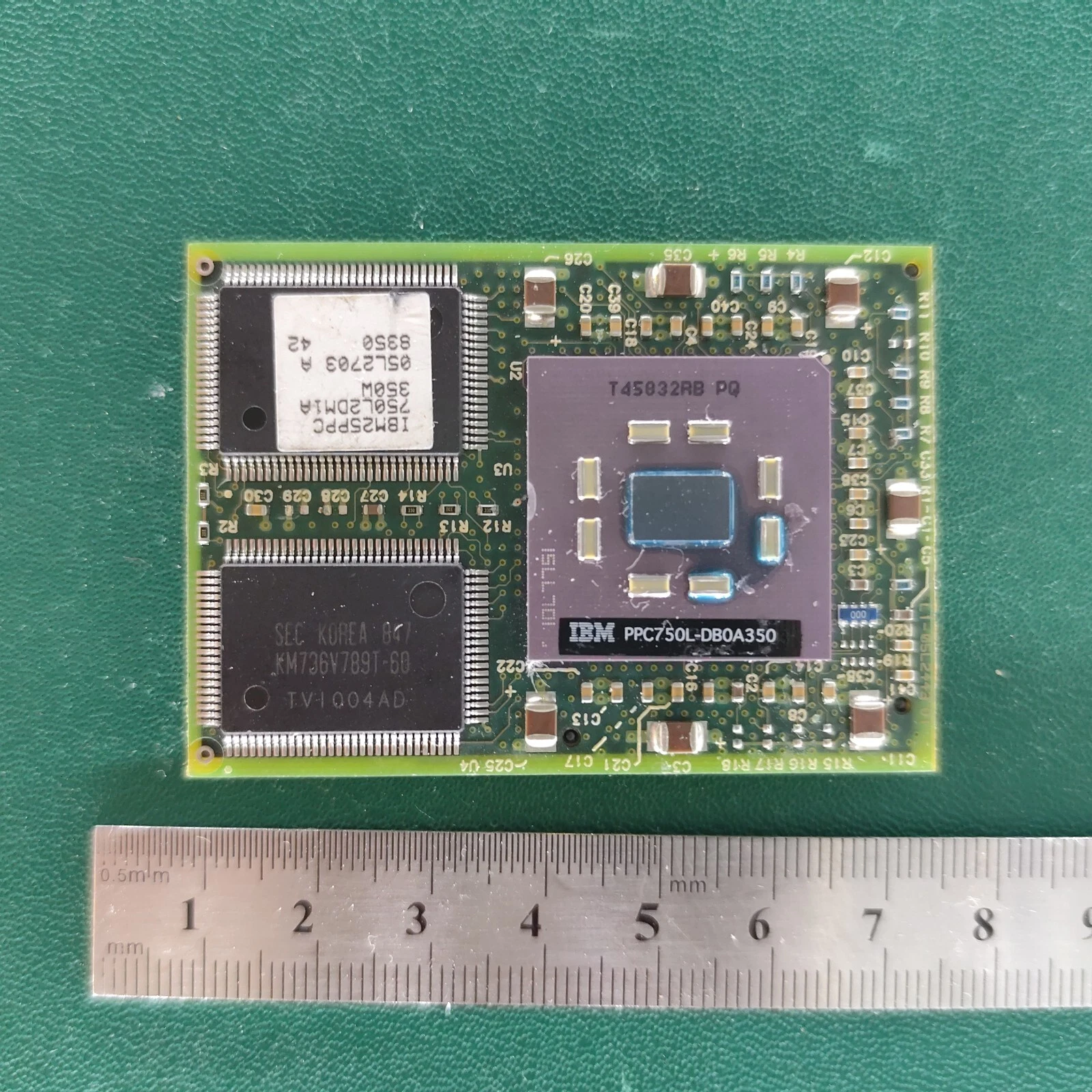 This module features IBM’s PowerPC 750L RISC CPU, commonly used in high-performance embedded systems and certain Apple Macintosh models of the late 1990s.