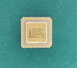 This specific specimen comes in a ceramic CQFP package with a gold cap and leads, showcasing the iconic semiconductor design of the early 1980s. It is a rare collectible piece of computing history, perfect for vintage chip collectors, museums, or display.