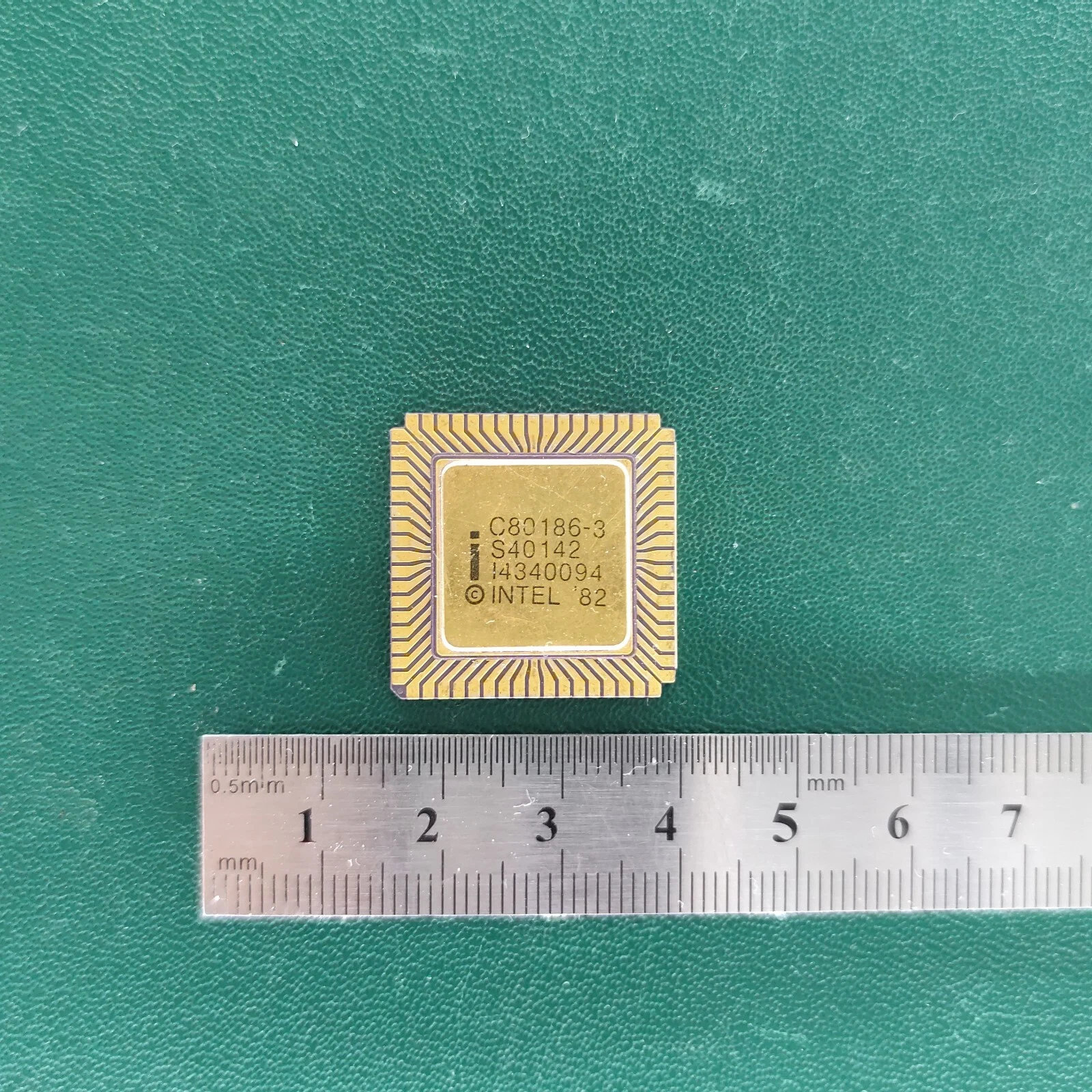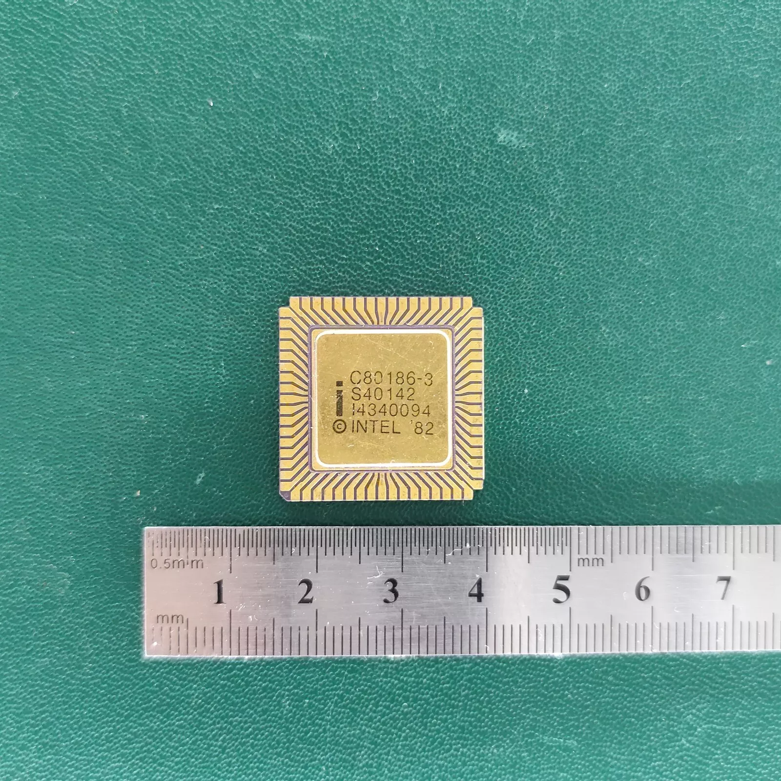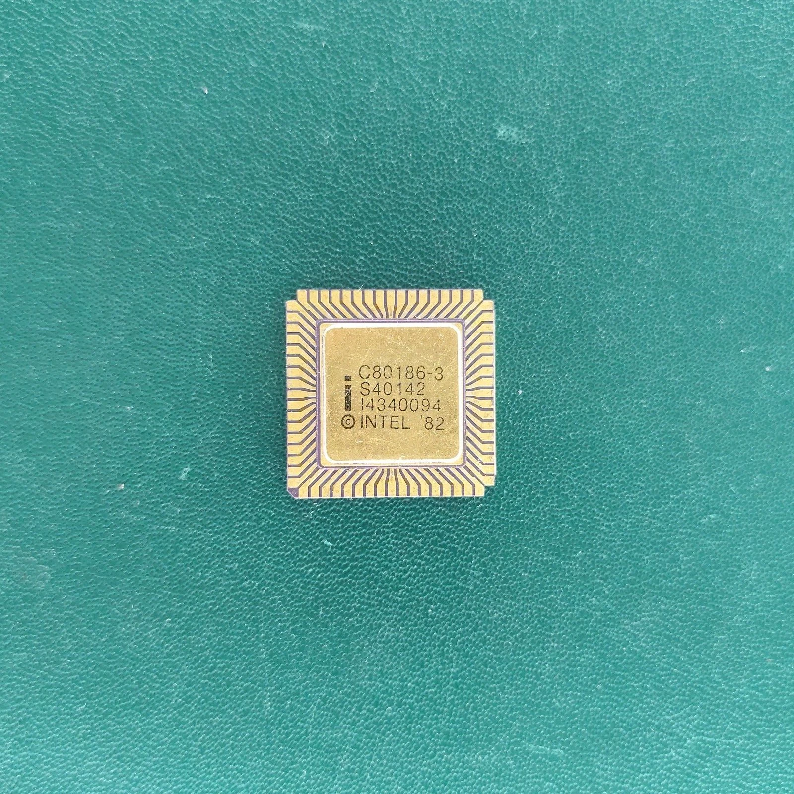 Intel C80186-3 – Vintage 3 MHz Ceramic Gold Cap CPU – Rare 1982 Collectible