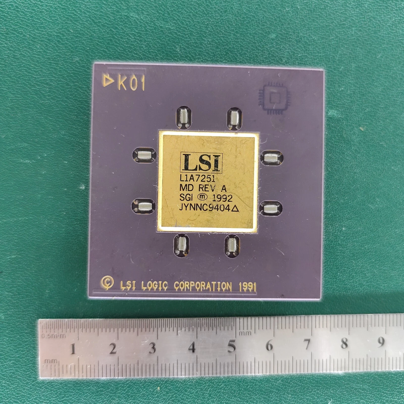 This is an LSI L1A7251 MD Rev A chip, manufactured by LSI Logic Corporation in 1992 for Silicon Graphics Inc. (SGI) systems. SGI was a pioneer in high-performance workstations and graphics computing during the 1990s, and components like this were essential in powering their cutting-edge machines.