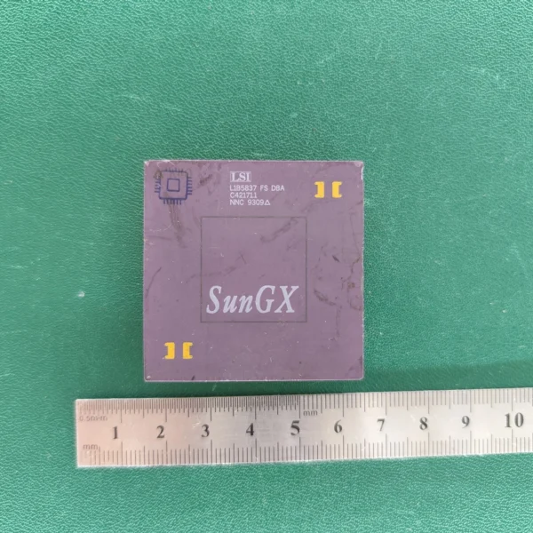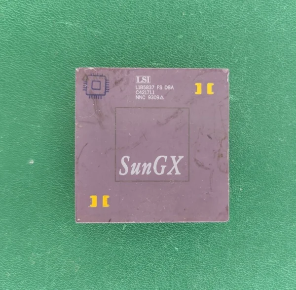 The SunGX LSI L1B5837 FS DBA (1993, date code 9309) is a vintage graphics processor, developed by Sun Microsystems and manufactured by LSI Logic. This chip was part of the SunGX graphics subsystem, used in Sun SPARCstation workstations during the early 1990s.