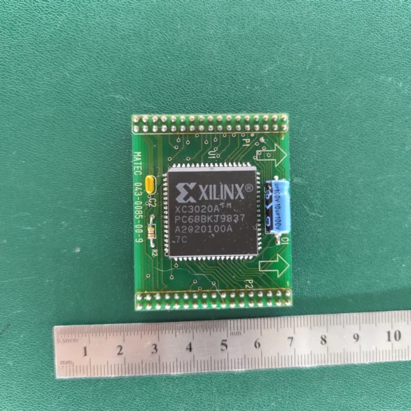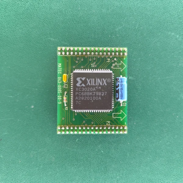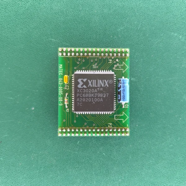 The Xilinx XC3020A-TM is a vintage FPGA (Field Programmable Gate Array), part of the Xilinx XC3000 family, one of the first commercially successful FPGA product lines. Mounted on a compact module board with additional passive components, this chip represents a key milestone in the evolution of programmable logic devices.